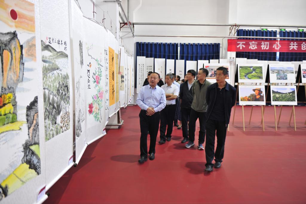 馮志君一行走進(jìn)展廳,仔細(xì)參觀欣賞每一幅作品,不時停下腳步駐足觀看、交流討論。展覽現(xiàn)場,一幅幅蒼勁有力的書法作品,一件件濃墨重彩的繪畫作品,一個個定格勞動場景的攝影作品,緊緊圍繞喜迎黨的二十大勝利召開進(jìn)行創(chuàng)作,通過書法、繪畫、攝影的藝術(shù)形式,禮贊中國共產(chǎn)黨的偉大成就,多角度展示我省在經(jīng)濟(jì)建設(shè)、科技進(jìn)步、城市面貌、和諧民生等方面取得的變化和成就,充分展現(xiàn)了奮斗在全省農(nóng)林水系統(tǒng)各條戰(zhàn)線上的勞動者的風(fēng)采。