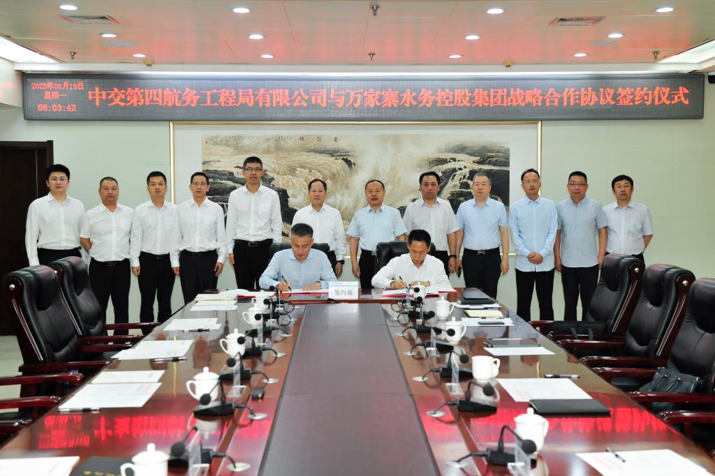 6月19日,萬家寨水控集團與中交第四航務工程局有限公司簽署戰略合作協議。集團公司黨委書記、董事長馮志君,黨委副書記、副董事長、總經理蘭康杰,中交第四航務工程局有限公司黨委書記、董事長李惠明出席簽約儀式。集團公司黨委委員、副總經理曹池,中交四航局副總經理、總經濟師周達培代表雙方簽約。雙方相關部門、單位負責人參加。